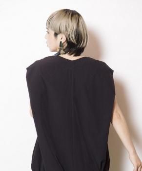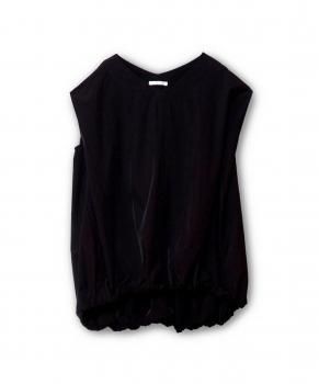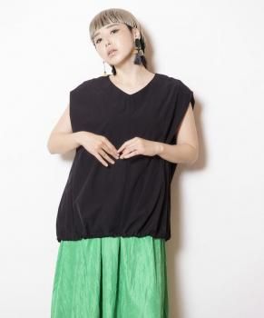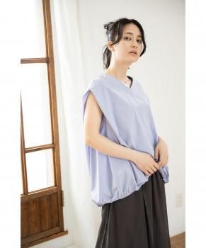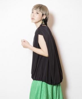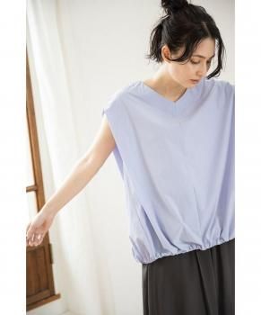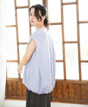 スッキリとしたVネックに、柔らかなバルーンシルエットがモードなブラウス。