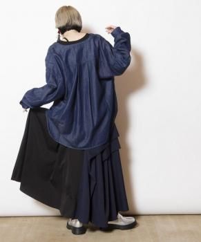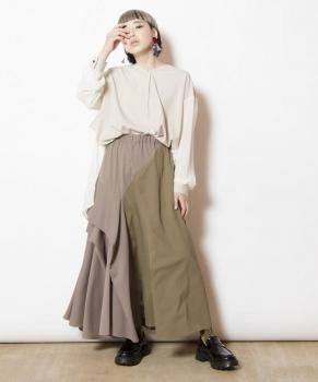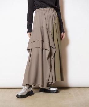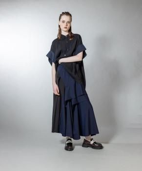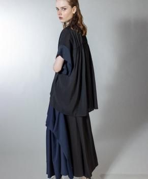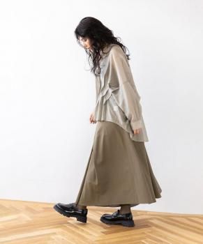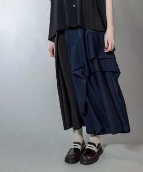 大振りのタックで独創的なシルエットを生み、ボリュームのあるフレアーがエレガント。