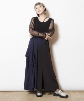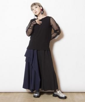 ボンディングxシアーニットレイヤードスリーブプルオーバー