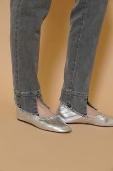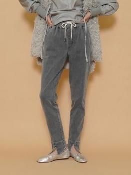 裾のスリットにフリンジ仕様がポイントのスキニーデニムパンツ。