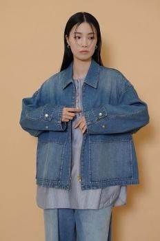 大きめポケットがポイントのデニムブルゾン。