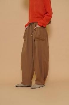 立体的なポケットに裾のタックで作るだぼ感がお洒落なワイドパンツ。