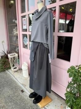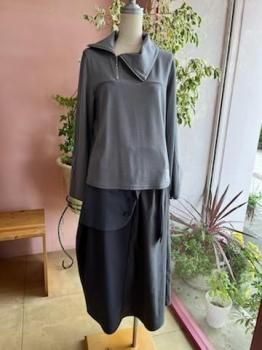 チュールとオーガンジーを部分的に重ねたスキッパートップス。