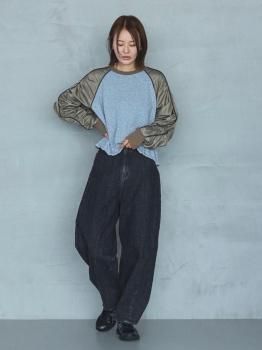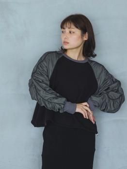 ボンディングxシアーニットレイヤードスリーブプルオーバー