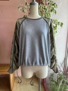 ギャザースリーブにパイピング効果でカッコよく見せてくれます。