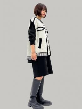 ツイードコンビネーションブルゾン(BLK/WHT)