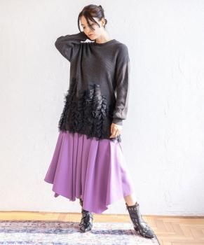 ボンディングxシアーニットレイヤードスリーブプルオーバー