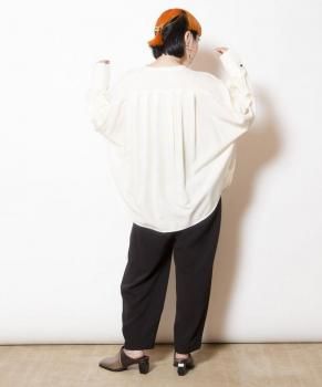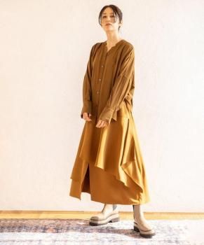 緩やかなコクーンシルエットを描き、キーネックで女性らしさと小顔効果をプラス。