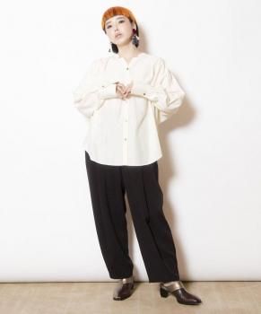 素材について: 表面にハリがありながらも、柔らかく落ち感のあるしなやかなブラウス地