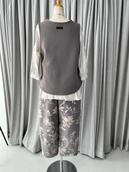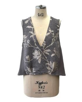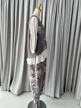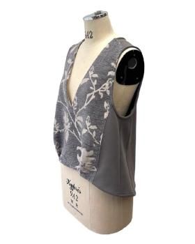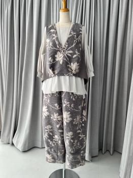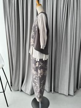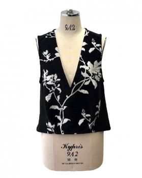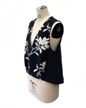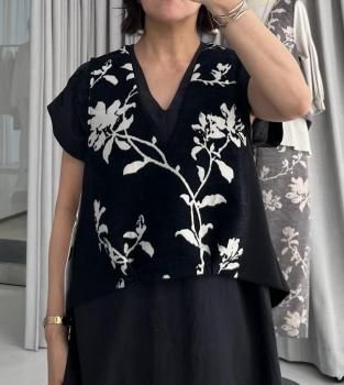 Vネックに花柄のジャガード素材がお洒落なベスト。
