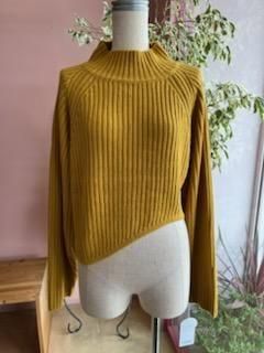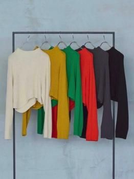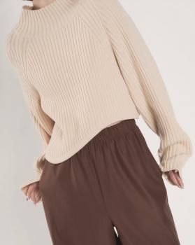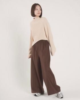 トレンドのワイドボトムに合わせやすいショート丈のニットプルオーバー。