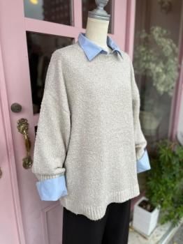 ボンディングxシアーニットレイヤードスリーブプルオーバー