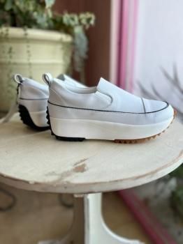 リアルレザーを使用した、スポーティーになりすぎない厚底スリッポン。