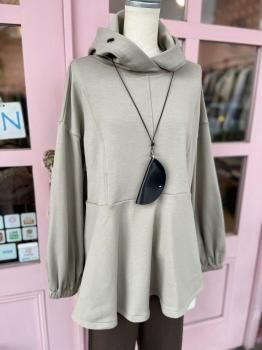 フロントからバックにかけての斜めラインに、フレアーシルエットでお腹周りが気にならないデザインがポイント!