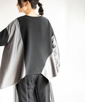 サイズ:バスト120+フレアー 肩幅60.5 着丈最長約75/最短51.5 袖丈46 裄丈76 裾幅約153 前下がり7