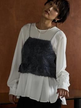 ボンディングxシアーニットレイヤードスリーブプルオーバー